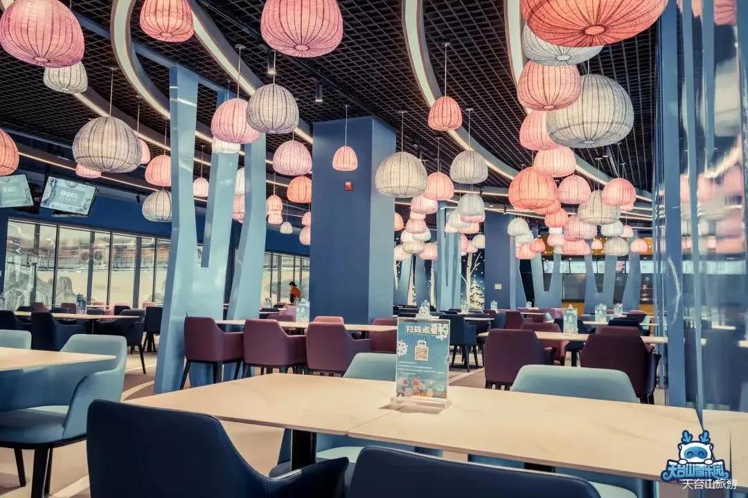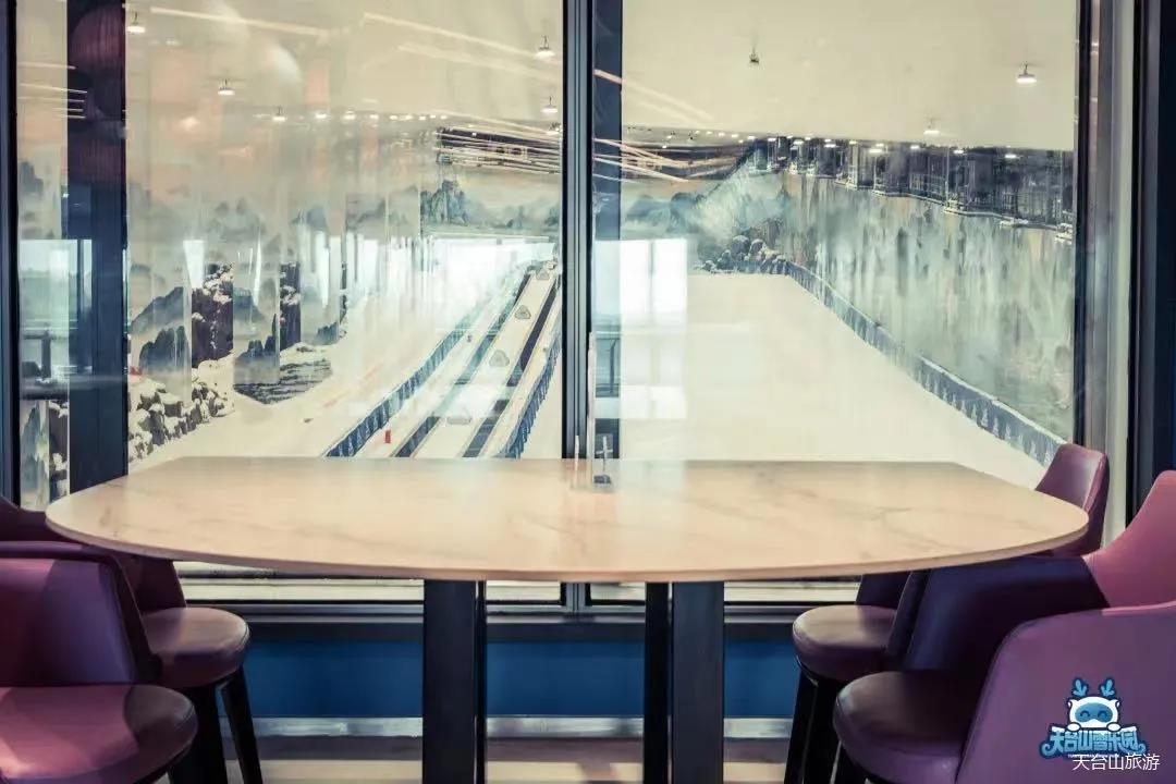 游玩過后如果感到饑餓,這里有能量餐廳提供豐富的美食選擇。由國際營養(yǎng)師專門為滑雪運動能量消耗配比的餐食,快速補充熱量,還有能量水吧提供各式各樣的飲品。坐在觀景窗旁,一邊欣賞雪場景色,一邊與同伴暢聊,瞬間令人幸福感爬升。