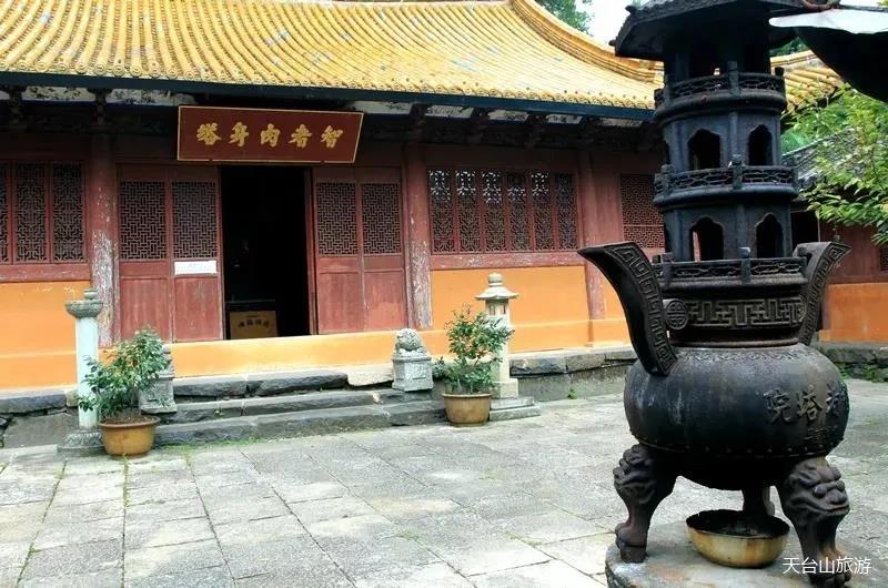 近年,智者塔院修葺一新,正殿三開間,門匾為“智者大師肉身塔”。肉身塔用青石制成,連座高約7米,鏤刻精細。2層6面,每層雕刻桿、枋、柱、斗、拱,第 一層正面佛龕設智者大師坐像。