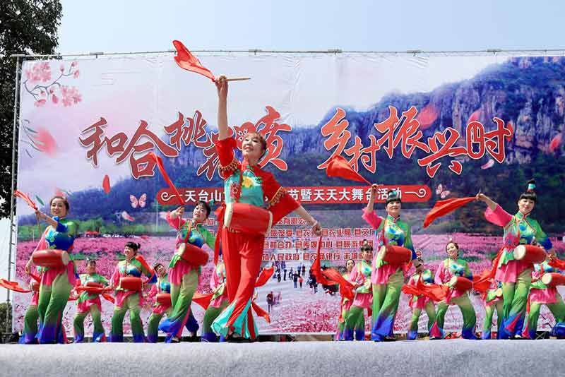 (圖為在后岸村舉辦的天臺(tái)山桃花節(jié)相關(guān)活動(dòng))